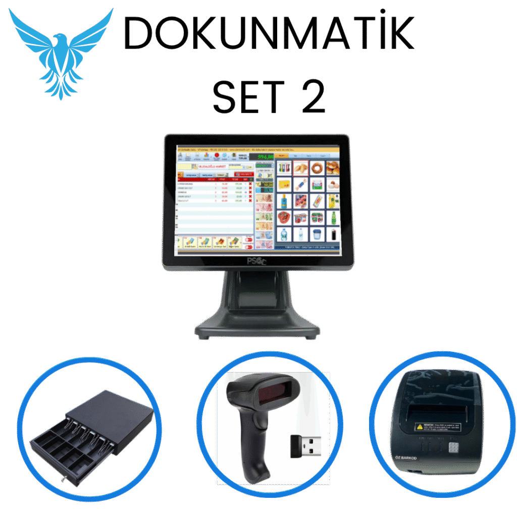 D Set 2, dokunmatik ekranlı PosPC ile hem modern bir görünüm sunar, hem de 58mm termal yazıcı sayesinde fiş basımını ekonomik şekilde gerçekleştirir.